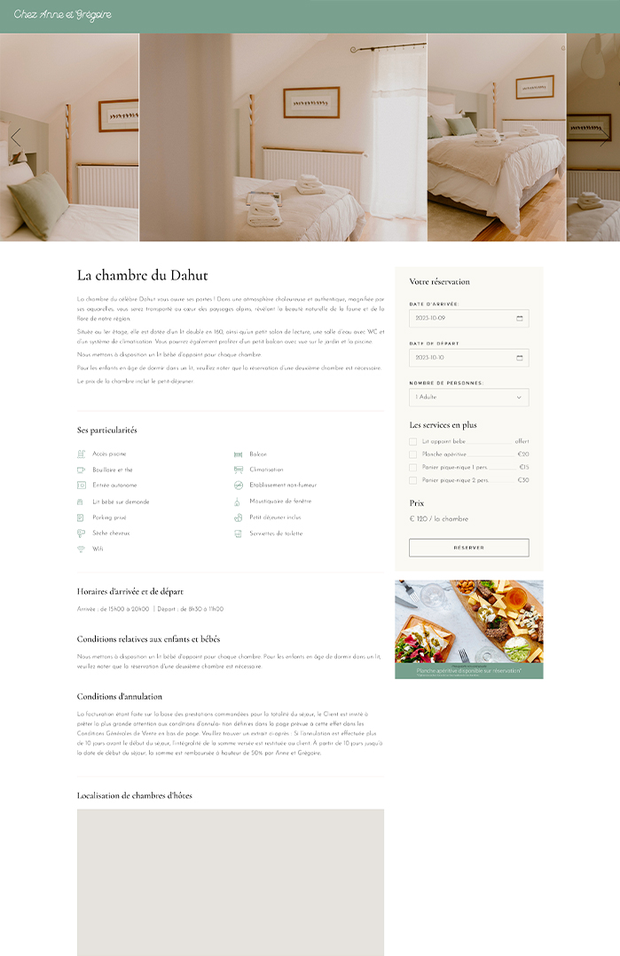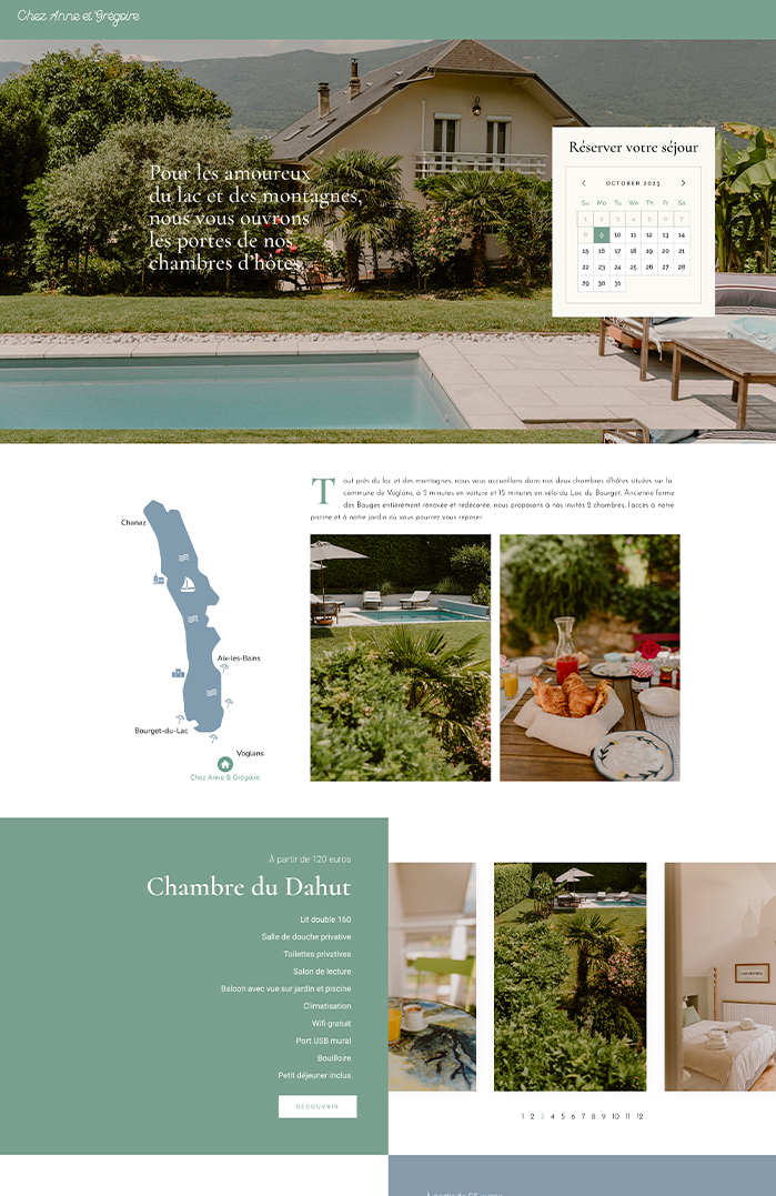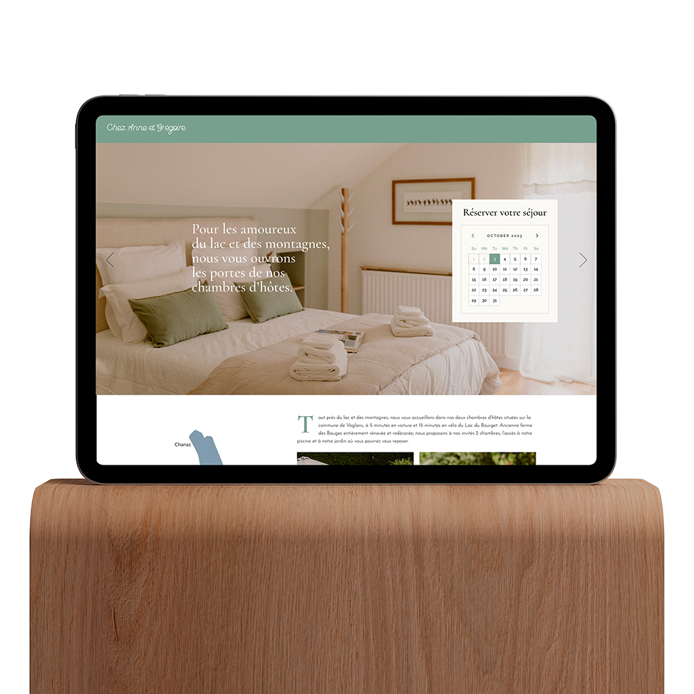 Anne et Grégoire nous ont confié la création d’une identité visuelle et d’un site internet multilingue (français et anglais) pour leurs chambres d’hôtes. Le site intègre une fonctionnalité de réservation en ligne, offrant une interface intuitive pour simplifier la gestion des réservations et garantir une expérience utilisateur optimale.